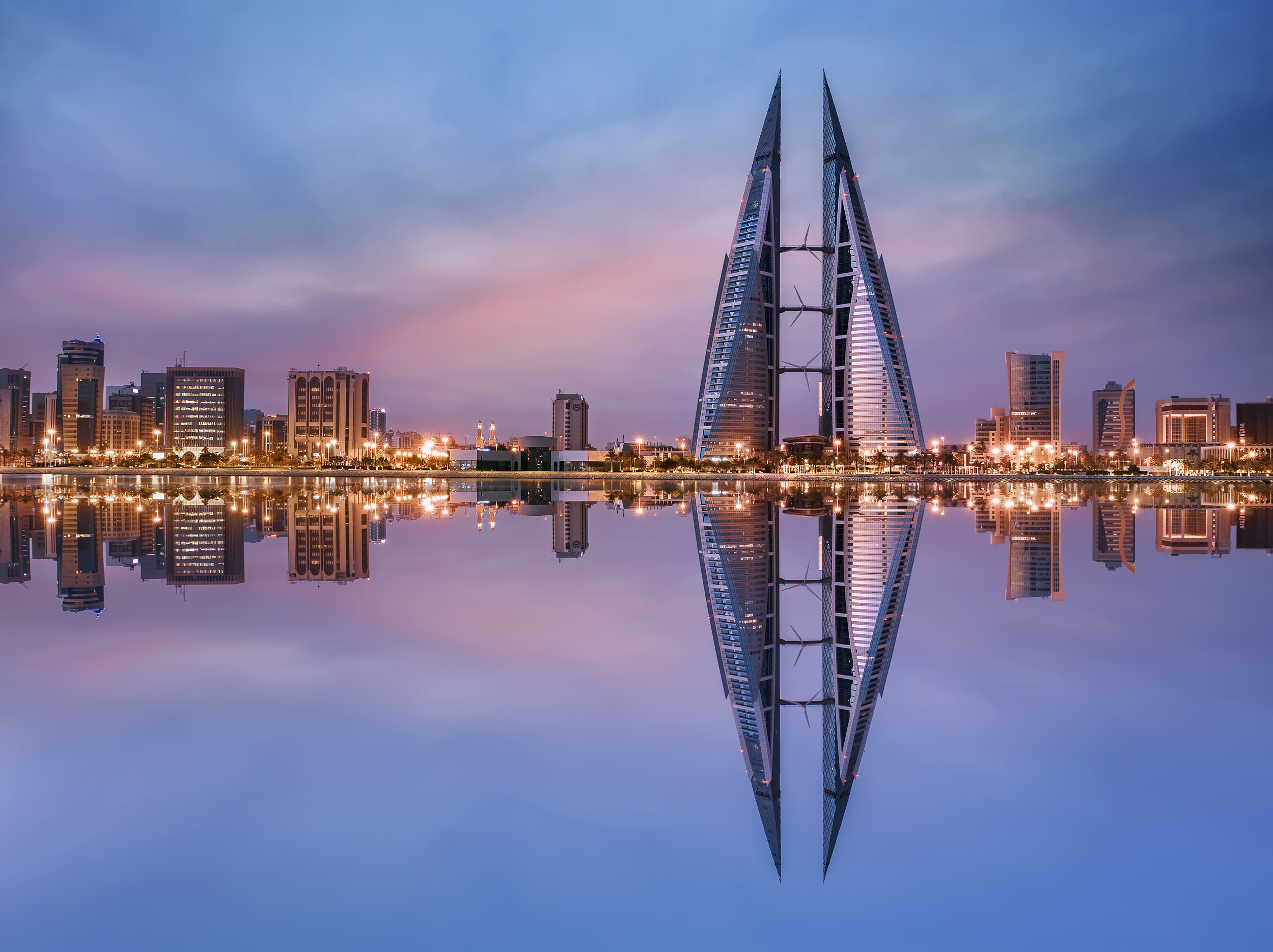 Rising 240 m above the capital city of Manama the sail-shaped towers of the Bahrain World Trade Centre rise up, with their architecture inspired by traditional Arabian merchant ships.